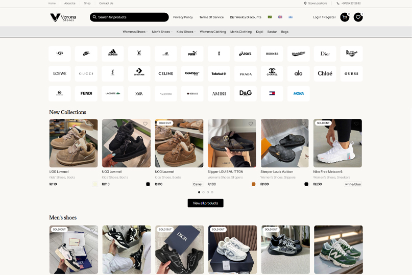 Verona Stores is a modern online shoe store catering to all age groups and styles. The platform was designed to provide a seamless shopping experience, with intuitive navigation, responsive design, and an organized catalog that makes it easy for customers to browse, select, and purchase footwear. The website emphasizes accessibility, visual appeal, and a smooth checkout process to enhance customer satisfaction.